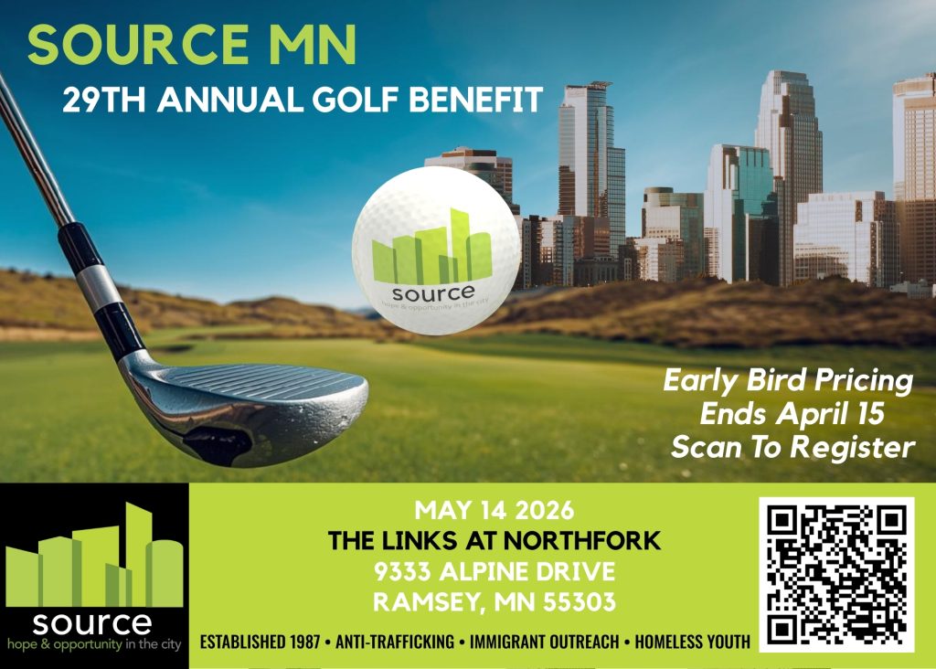 Join us for our 29th Annual Golf Benefit at the beautiful Links at Northfork golf course in Ramsey, MN. This is a perfect way to learn more about the work of Source while enjoying lunch and a round of golf. Register today, because spots can fill up fast! Click the button below for more info and to register.