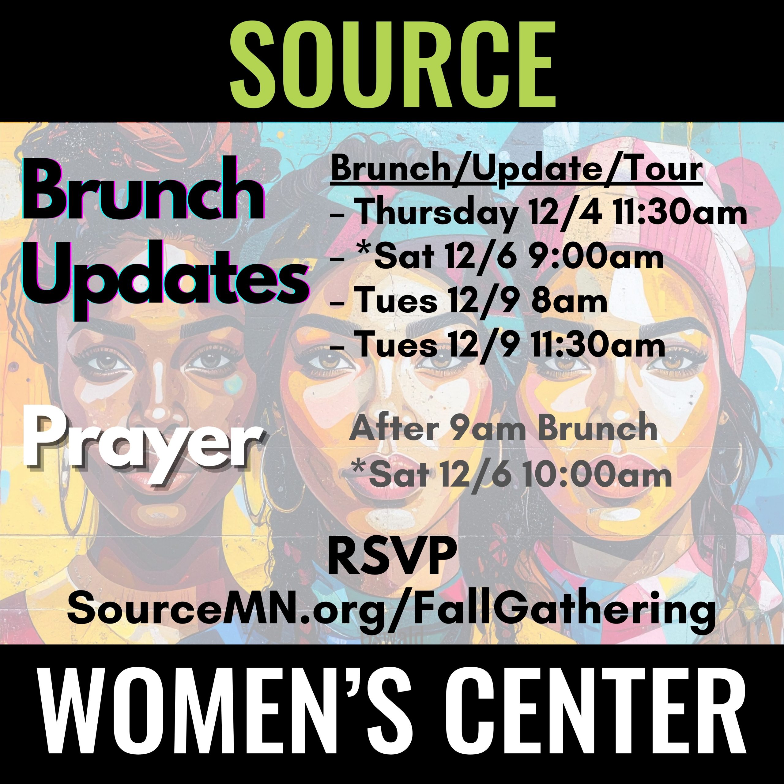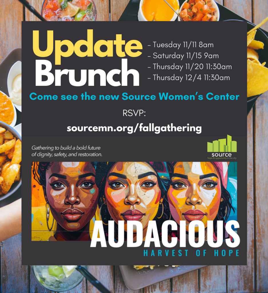 Join Source MN as we celebrate lives being transformed and take another step forward into what God has next: the launch of a dedicated women’s facility to provide safety, healing, and hope. Come hear how God is at work through Source. We are seeing impacts as we help stabilize immigrants and refugees, invest in urban youth, engage in homeless outreach, support marginalized women through drop-in hours and residential programs, and so much more. Source MN seeks to address the immediate need, but ultimately works to end the cycles of oppression, poverty, addiction, and hopelessness that pervade our city. Come enjoy heavy hors d’oeuvres and fellowship while learning about how you can partner with us to continue rebuilding the next generation.
