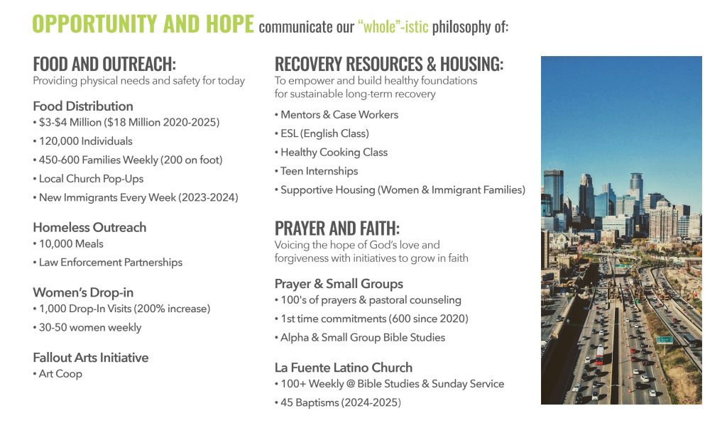 In 2024 alone, over 1,000 women came through our doors, twice the number from the previous year. Today, 30–50 women attend each week, overwhelming our current facility, which only has one shower, one washer/dryer, and 300 sq. ft. of meeting space.